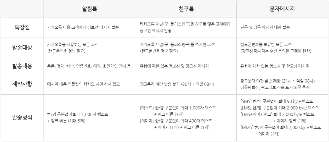 - 시스템에서 자동으로 발송되는 알림톡, 문자메시지 등에 적합